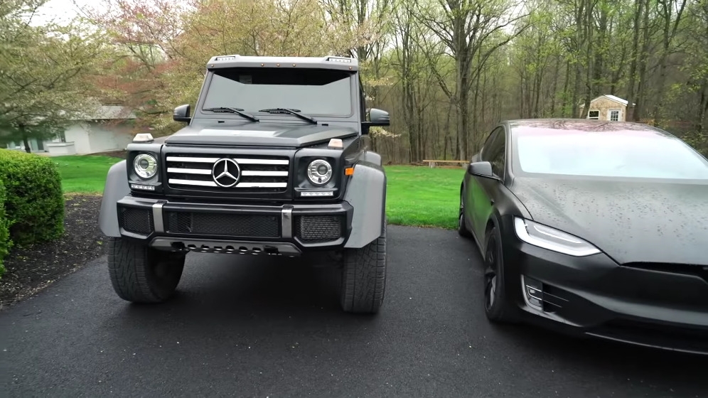 Molti pensano che lo speciale G-Wagen sia in qualche modo più capace di qualsiasi altro Classe G con motore V8 e lo è ma soltanto per quanto riguarda l’attraversamento di particolari ostacoli. A parte gli assi a portale, per tutto il resto è solo un normale Classe G più alto. In un tiro alla fune, l’altezza extra risulta essere uno svantaggio, specialmente quando ci si scontra con una Model X che ha la maggior parte del suo peso nella zona sottostante. Inoltre, si tratta di un esemplare dual motor, quindi con due motori elettrici.