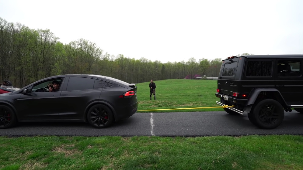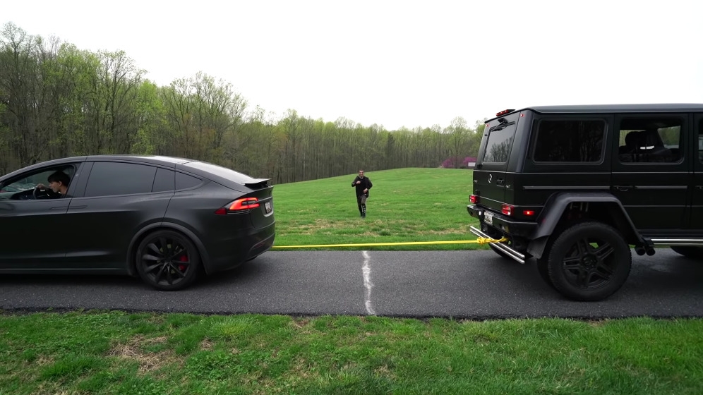 Mercedes-Benz G550 4×4²: il fuoristrada tedesco affronta una Model X nel tiro alla fune