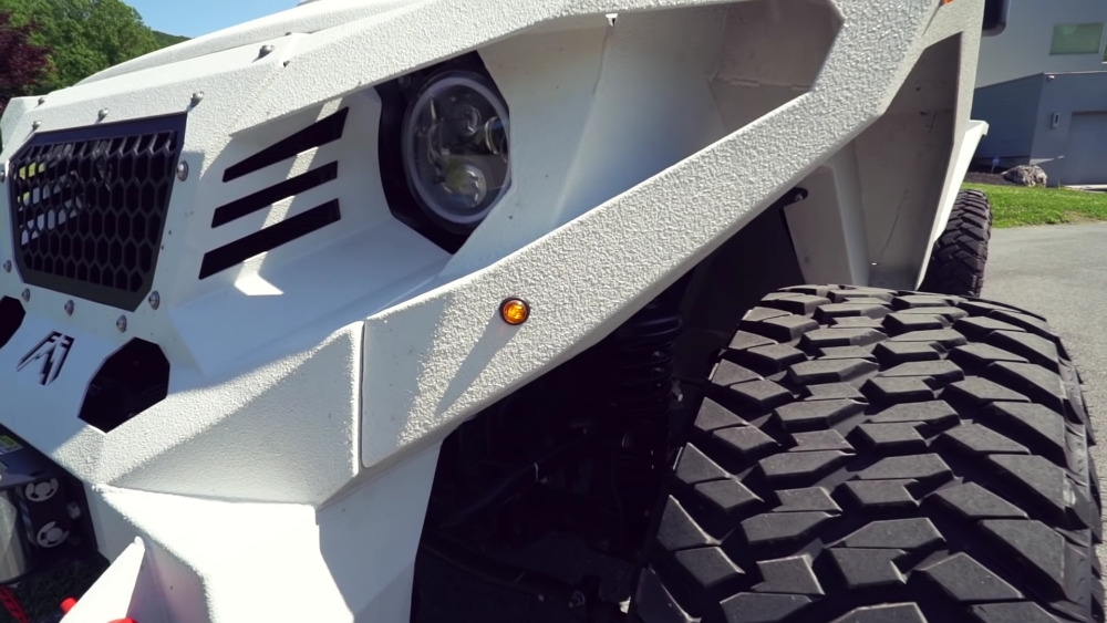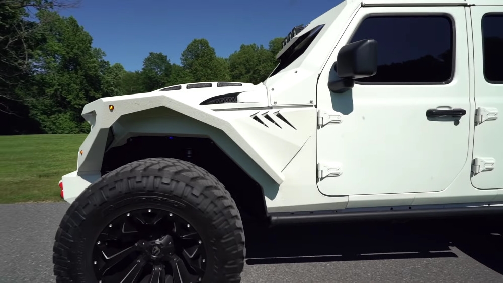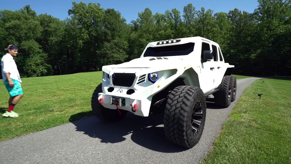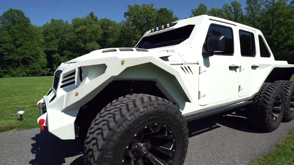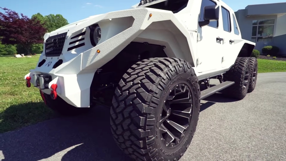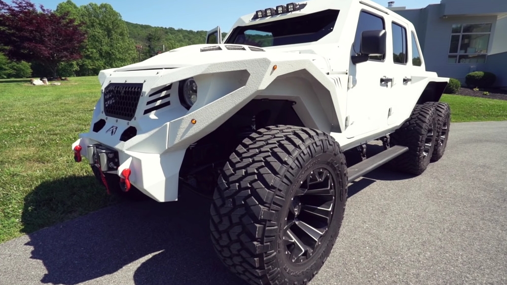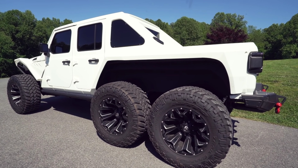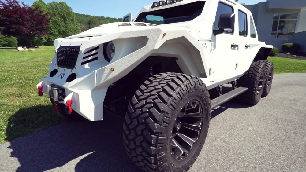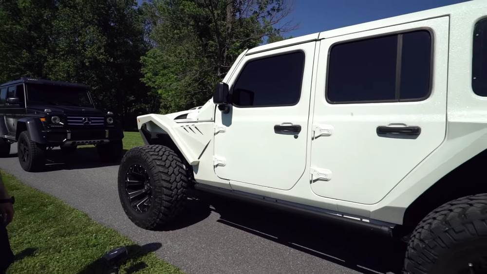 Nel caso del Mercedes-Benz G550 4×4², sotto il cofano troviamo un motore V8 biturbo da 4 litri mentre lo speciale Gladiator è equipaggiato con un turbodiesel. Si tratta più nello specifico di un EcoDiesel V6 da 3 litri che di serie propone 599 nm di coppia massima. Tuttavia, questo esemplare sviluppa oltre 610 nm. Molto probabilmente, i creatori hanno rimappato la centralina.