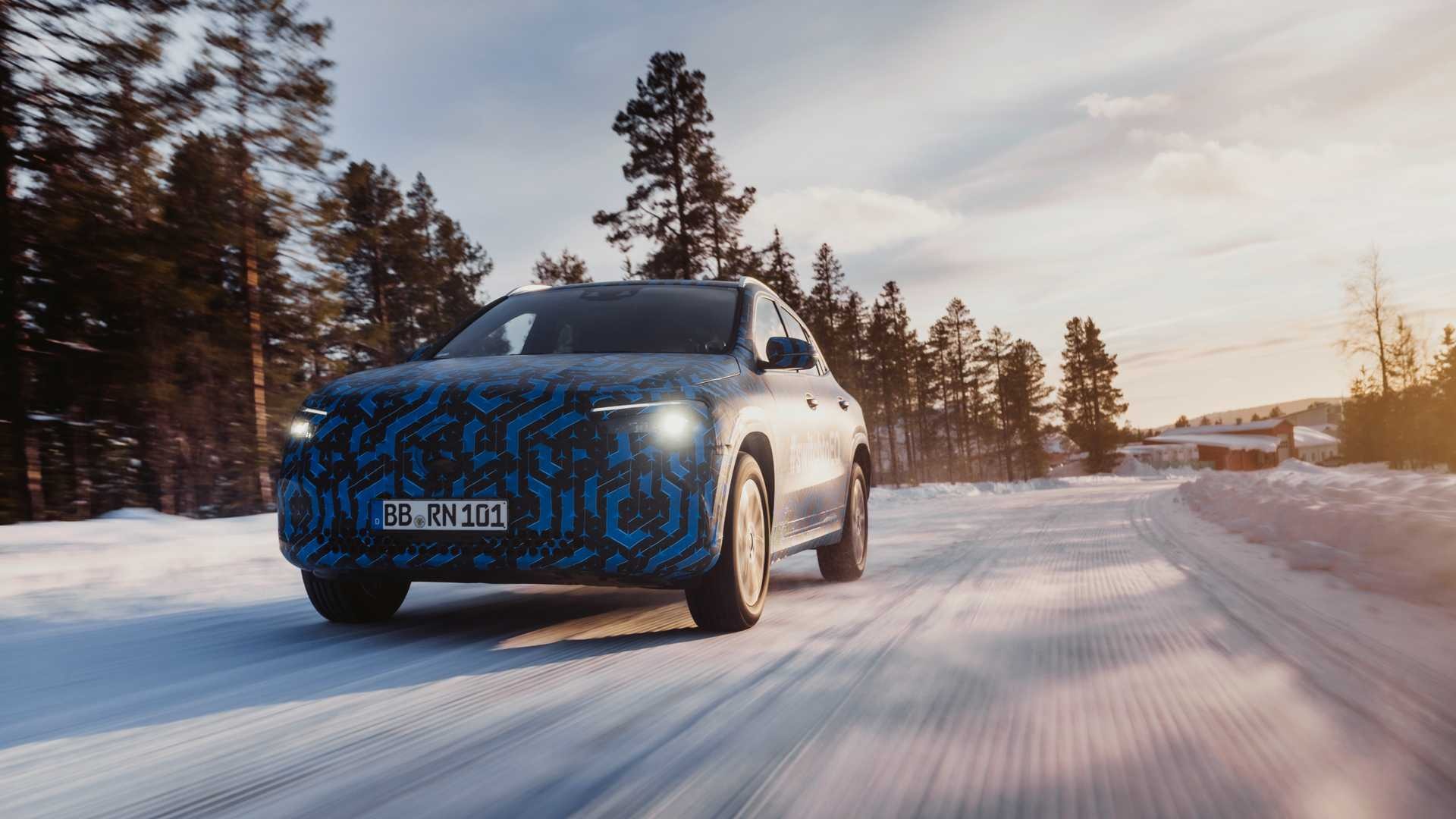 Dopo il video spia apparso online nel corso della giornata di ieri, torniamo a parlare del Mercedes EQA e questa volta lo facciamo grazie alle nuove immagini ufficiali diffuse da Mercedes poco fa. La casa tedesca ha scelto di anticipare il debutto del suo nuovo crossover a zero emissioni con il rilascio di un nuovo teaser che ci mostra un prototipo del futuro EQA impegnato in alcuni test su tracciati nevosi.